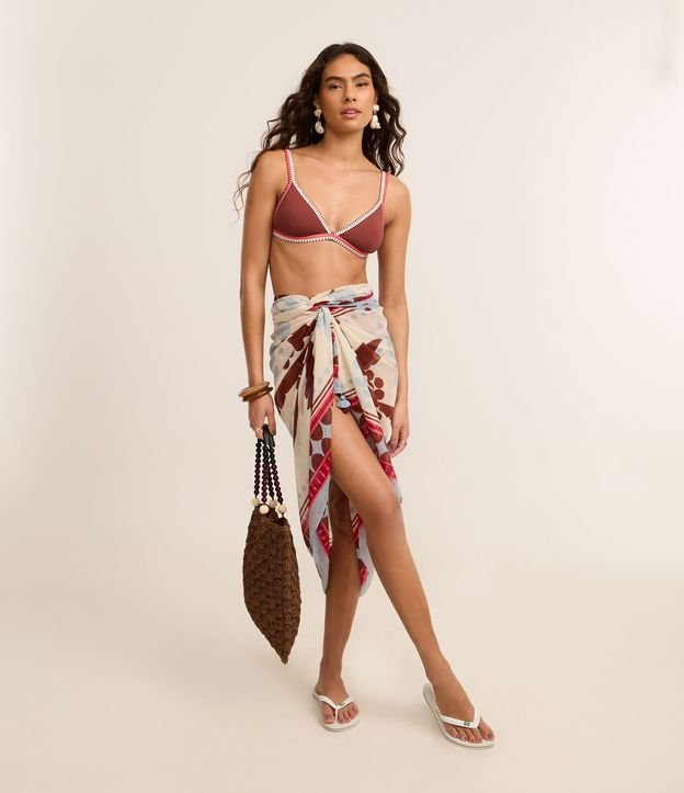 Canga Retangular em Chiffon Estampada de Folhagem e Tassel
