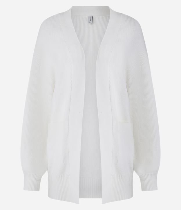 Cardigan Alongado em Tricô com Bolsos e Manga Bufante