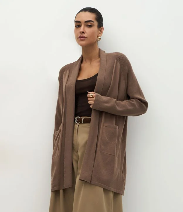 Cardigan alongado em tricô com modelagem regular e gola diferenciada, trazendo leveza e conforto para o dia a dia. Possui mangas longas e bolsos frontais funcionais, ideal para compor sobreposições versáteis. Peça confeccionada em viscose certificada, contribuindo para um processo mais sustentável.