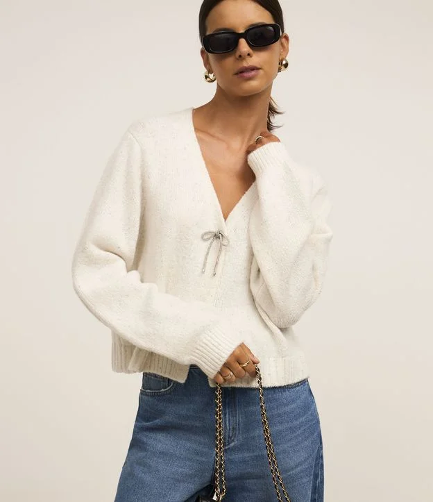 Cardigan em Tricô com Fechamento de Laços