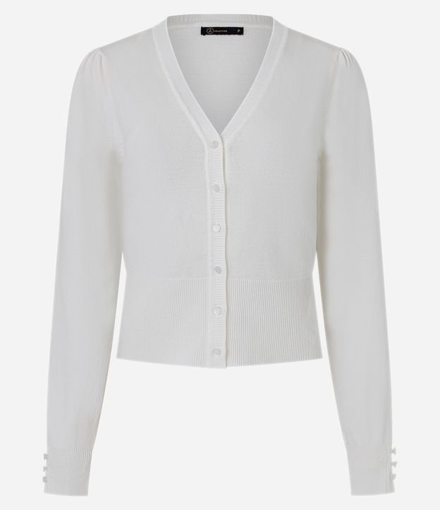 Cardigan em Tricô com Gola V e Botões Perolados Branco