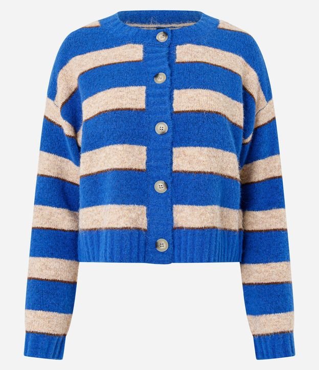 Cardigan em Tricô Listrado com Botões Azul