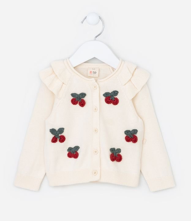 Cardigan Infantil em Algodão com Cereja Bordado - TAM 0 A 18 meses Creme