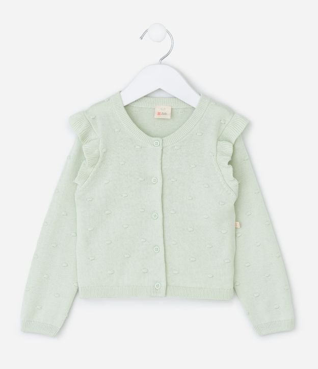 • Cardigan Infantil em Efeito Tricô com Babado Texturizado – Tam RN a 18 Meses Verde Oliva 1