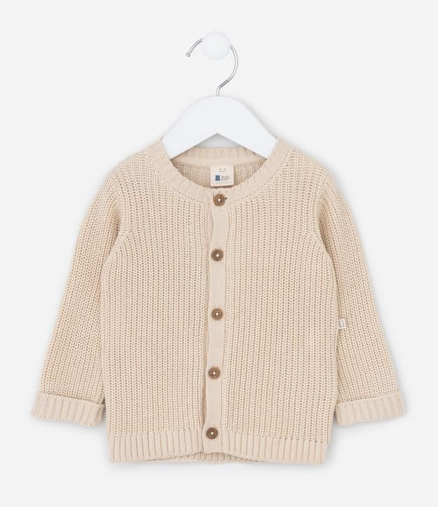 Cardigan Infantil em Tricô com Bordado nas Costas – Tam 0 a 18 Meses Bege
