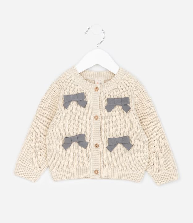 Cardigan Infantil em Tricô com Lacinhos Aplicados – Tam RN a 18 Meses Bege Claro