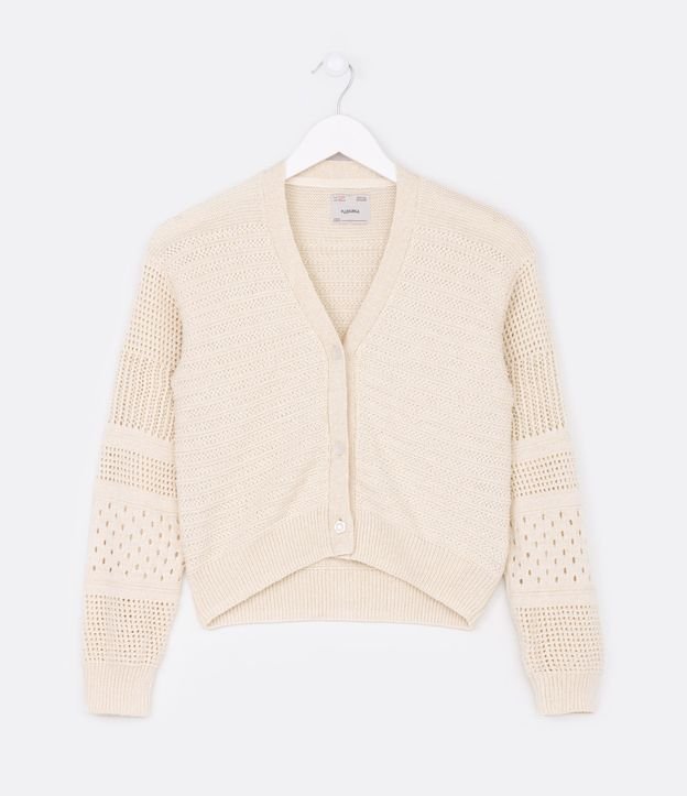 Cardigan Infantil em Tricô com Pontos Diferenciados e Botões de Florzinhas - Tam 5 a 14 Anos