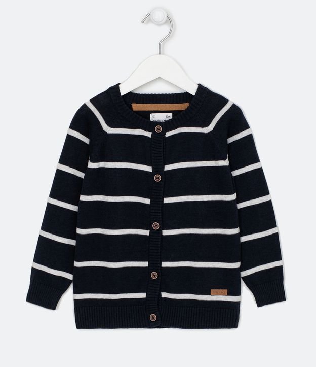 Cardigan Infantil em Tricô Listrado - Tam 1 a 5 anos