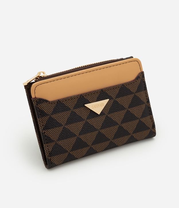 • Carteira Envelope Pequena em PU com Estampa Triângulos Marrom 1