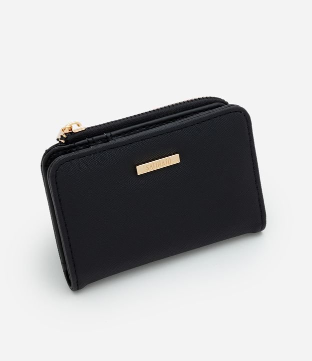 Carteira Média em PU com Bolsinho Para Cartão Preto