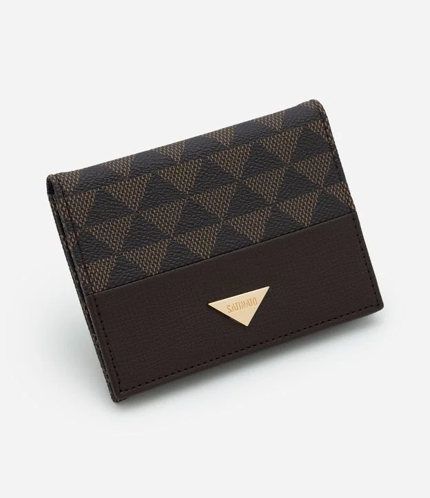Carteira Pequena em PU com Estampa Triângulos Marrom