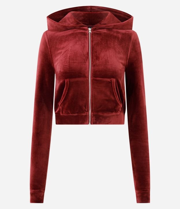 Casaco Aberto em Plush com Zíper e Bolsos Vermelho