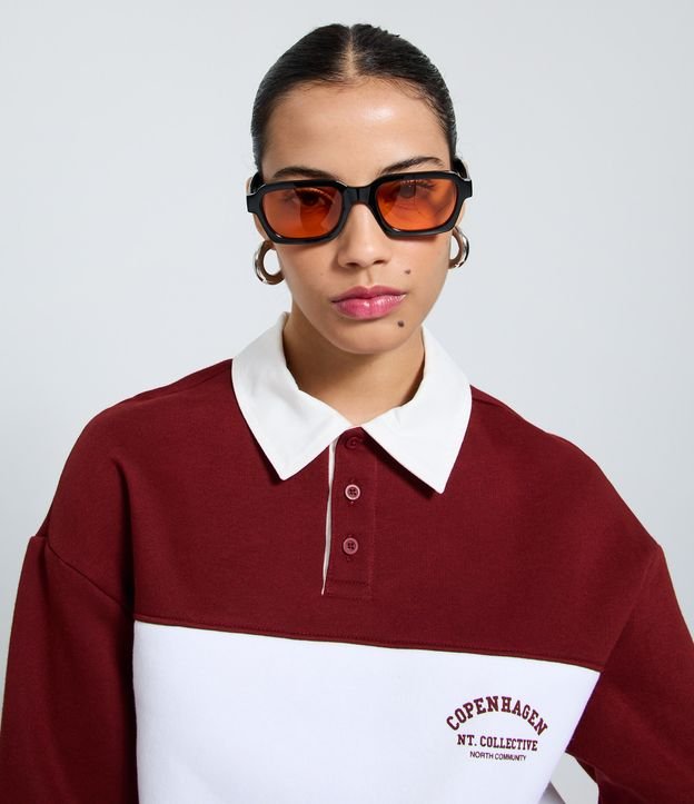 Casaco Alongado em Moletom com Gola Polo e Listras Vermelho