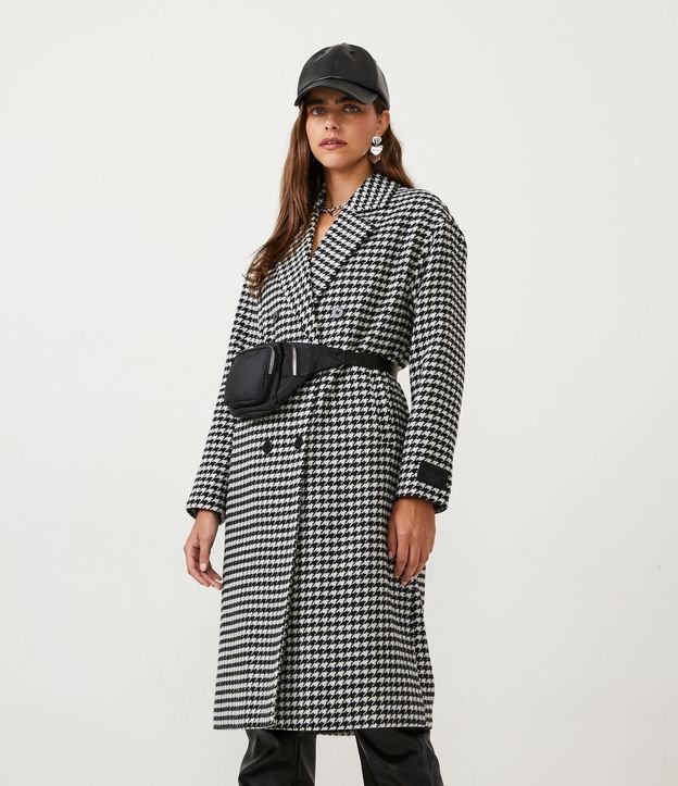 Casaco Alongado em Polivelour Pied-de-Poule e Botões Aplicados
