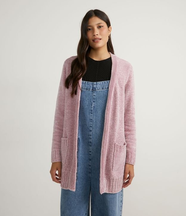 Casaco Alongado em Tricô Chenille com Bolsos