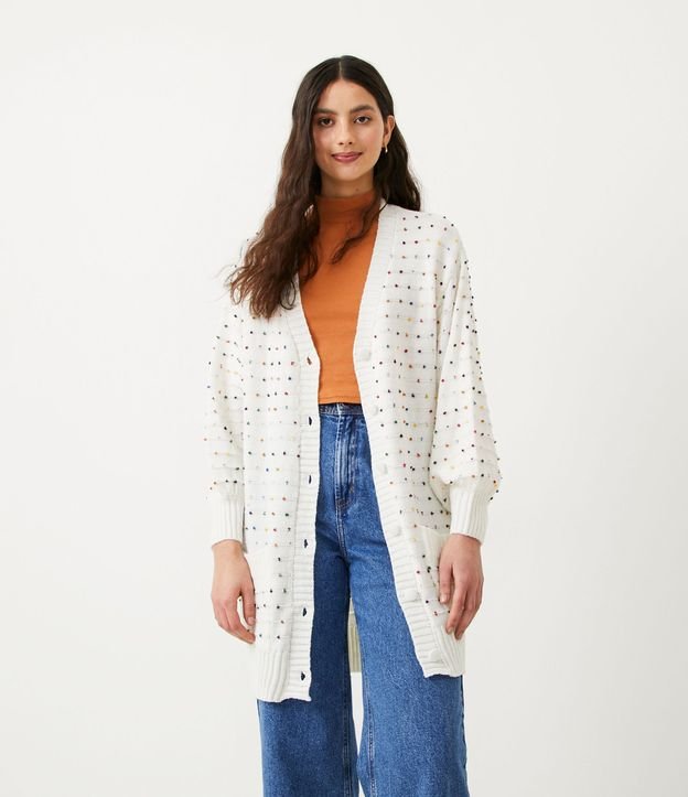 Casaco Alongado em Tricô com Bolsos e Listras