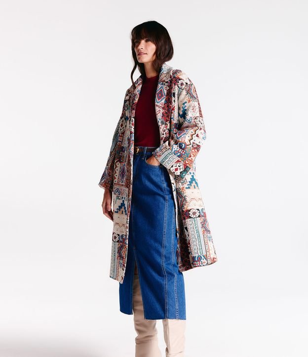 Casaco Alongado Jacquard com Efeito Patchwork Étnico