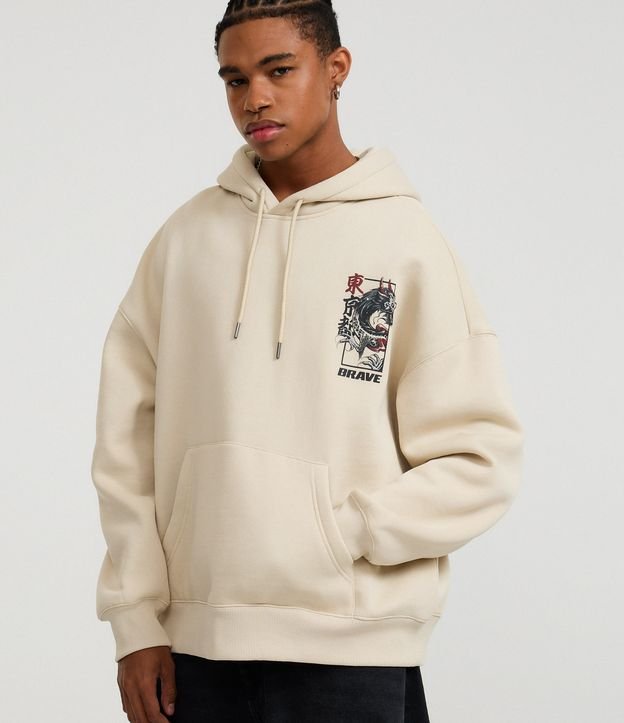 Casaco Boxy em Moletom com Felpa com Estampa Brave Dragon Bege