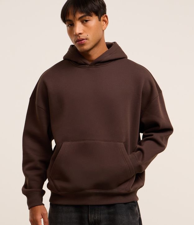 Casaco Boxy em Moletom com Felpa Liso Marrom