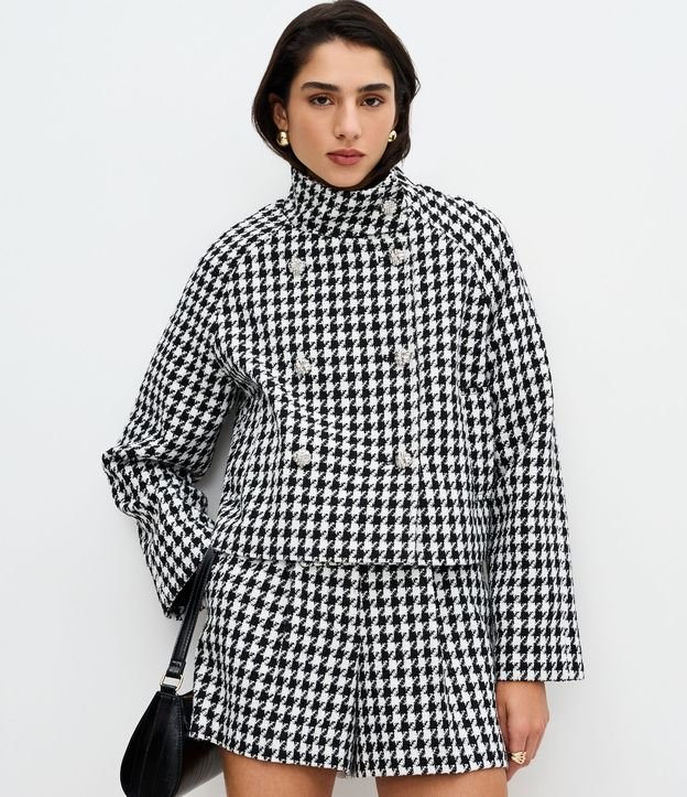 Casaco Curto com Estampa Pied de Poule Branco/Preto