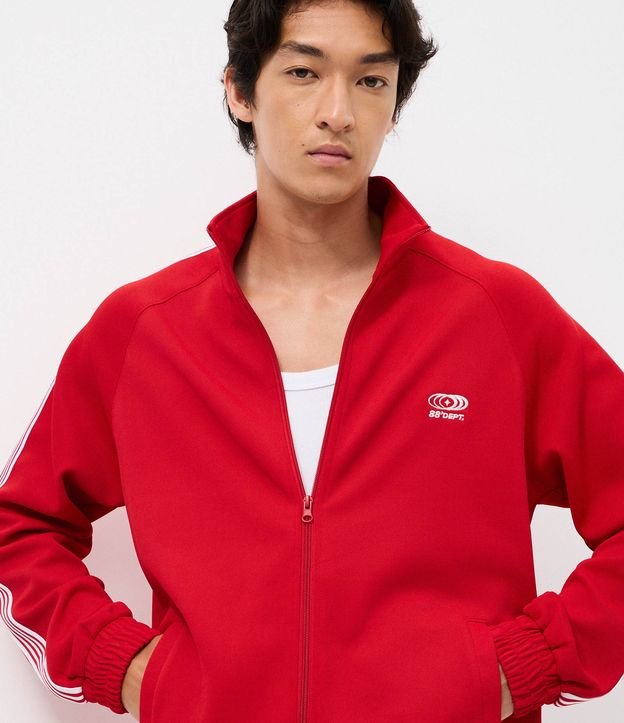 Casaco em Helanca com Bordado Localizado e Listras Contrastantes Vermelho