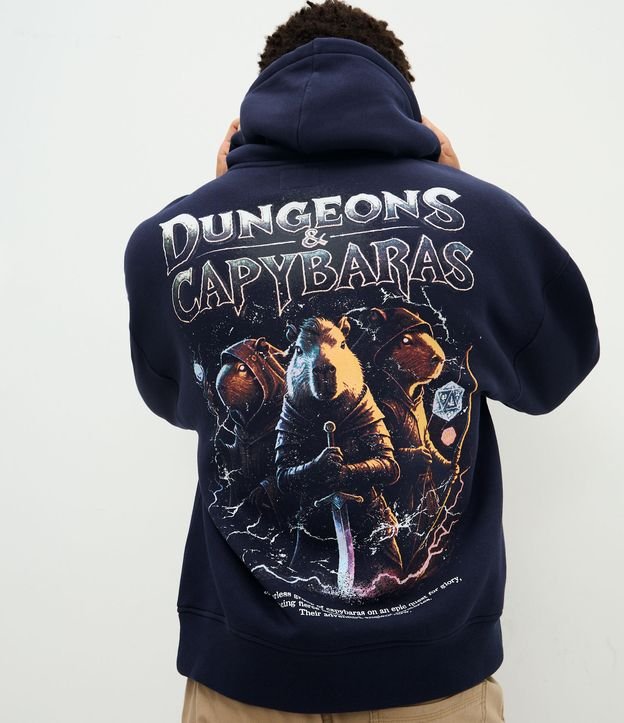 Casaco em Moletom com Felpa com Estampa Dungeons Capybaras Azul