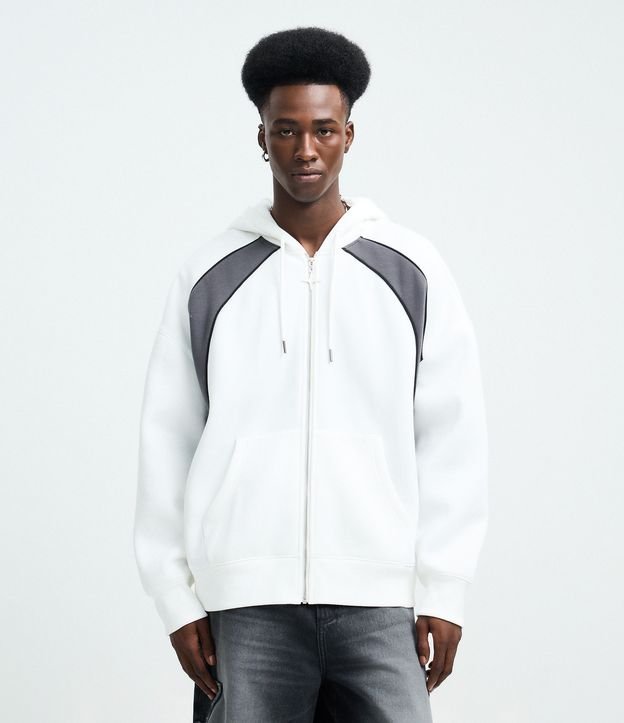 Casaco em Moletom com Recortes Contrastantes Branco