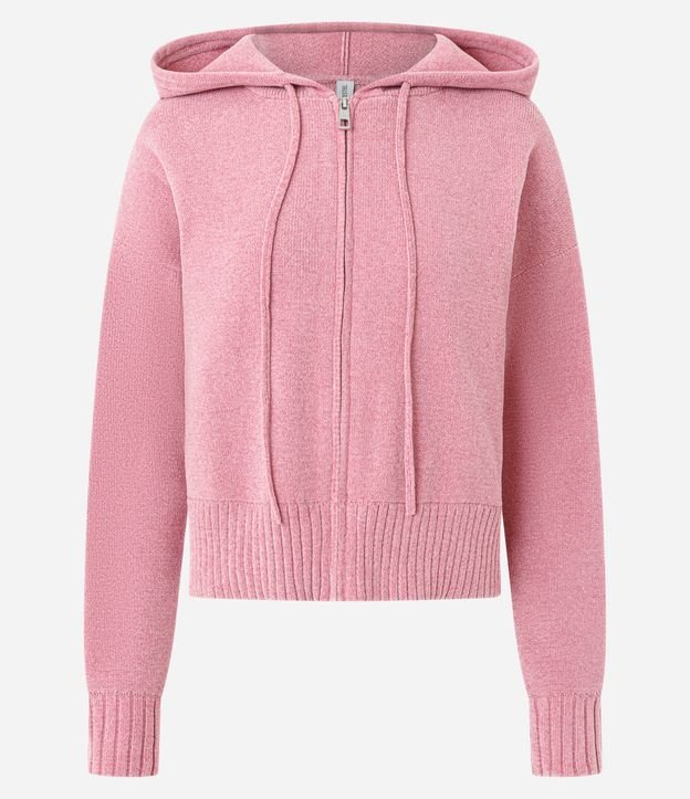 Casaco em Tricô Chenille com Capuz e Zíper Rosa