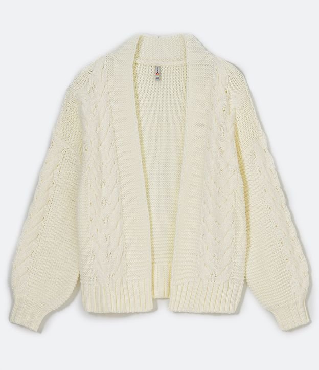 Casaco em Tricô com Detalhes Trançados e Mangas Bufantes