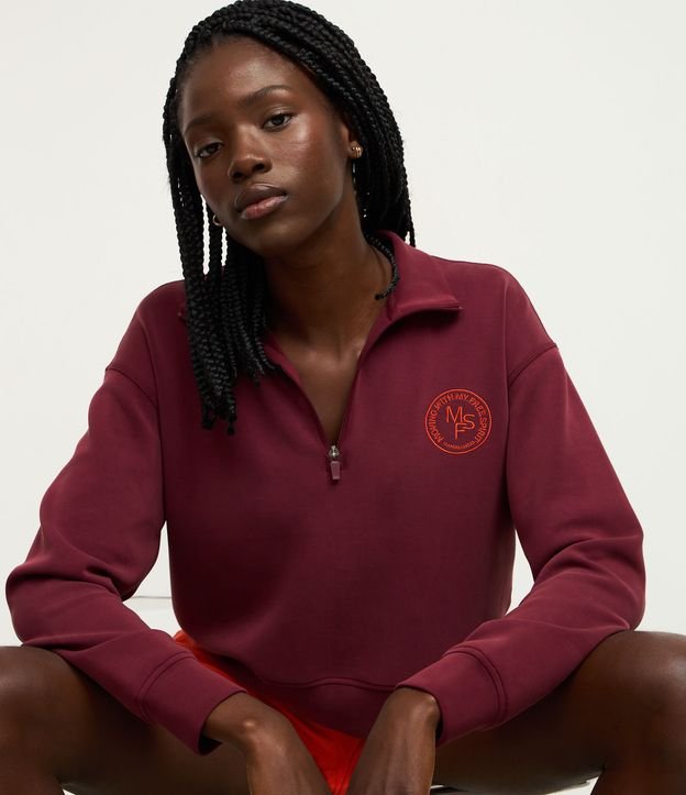 Casaco Esportivo em Modal com Gola Alta e Zíper Vermelho