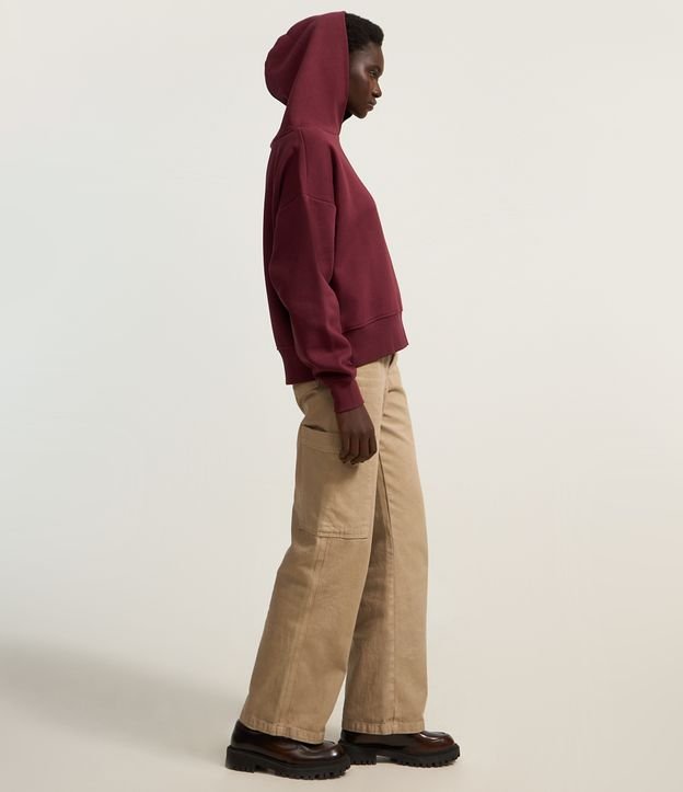 Casaco Fechado Básico em Moletom com Forro Fleece Bordô
