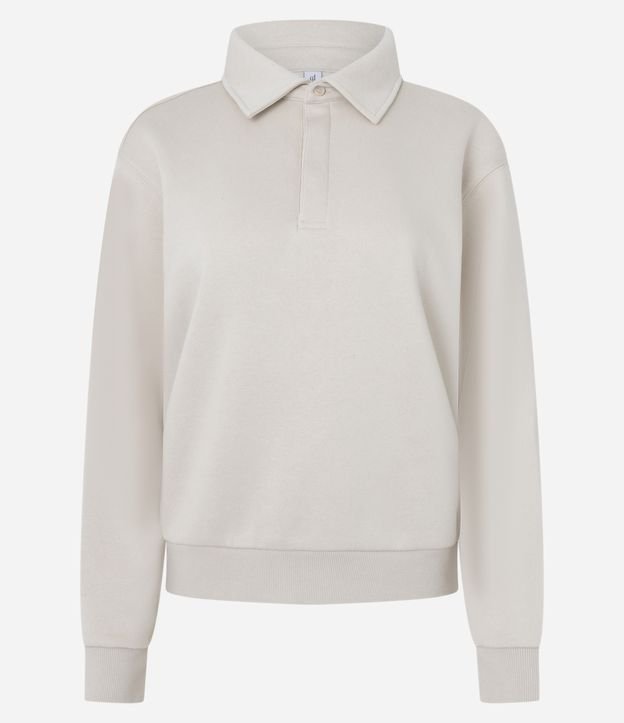 Casaco Fechado em Moletom com Gola Polo Bege