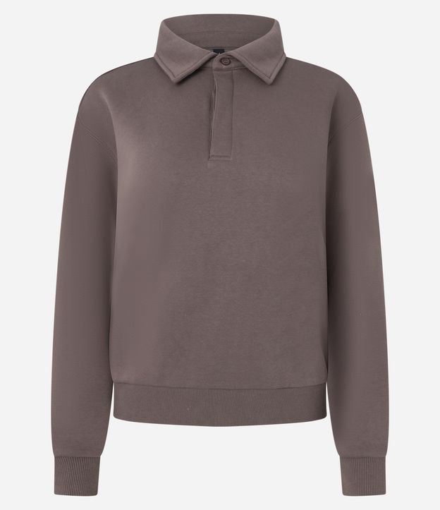 Casaco Fechado em Moletom com Gola Polo Marrom