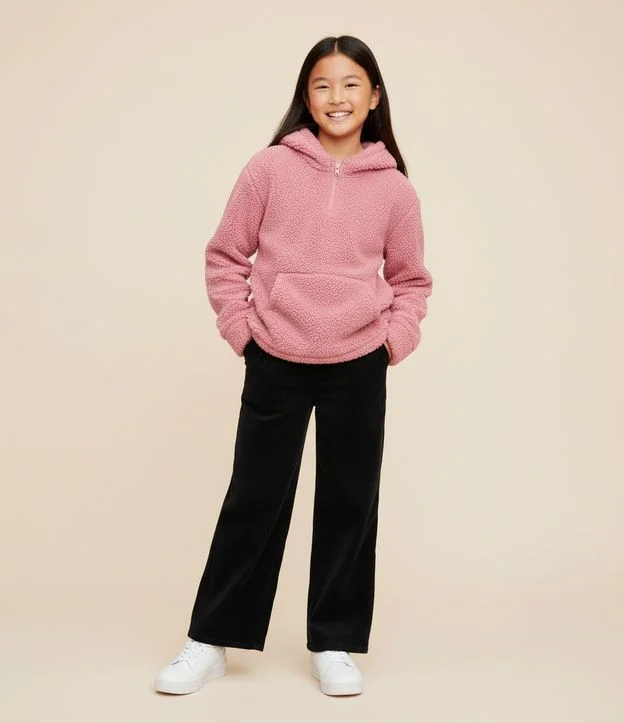 Casaco Fechado Infantil em Sherpa com Capuz de Orelhinhas - Tam 5 a 14 anos Rosa