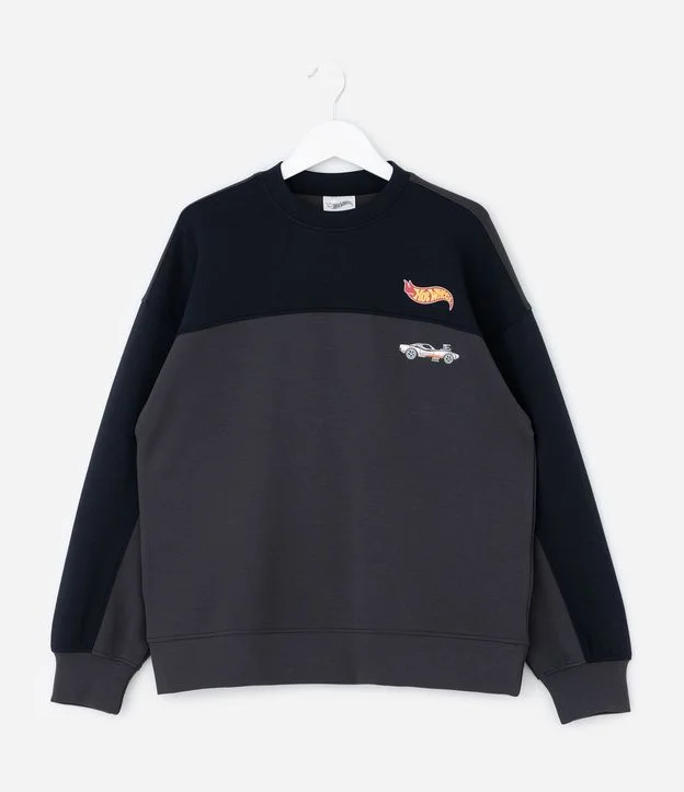 Casaco infantil modelo boxy confeccionado em tech fleece leve, proporcionando toque macio e conforto térmico. Possui gola redonda, mangas longas, bloco de cor e estampas localizadas Hot Wheels, marca icônica de miniaturas de corrida que inspira aventuras cheias de velocidade e imaginação.