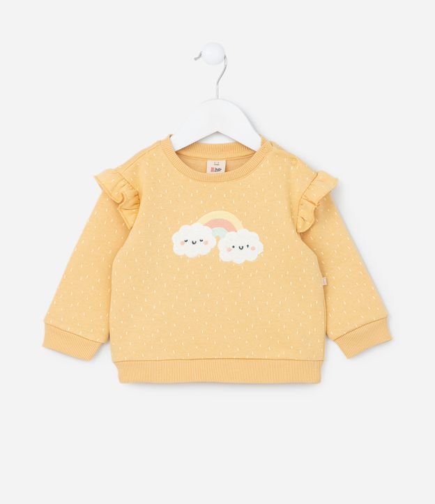 Casaco Infantil com Babadinho e Bordado Arco-Íris - Tam 0 a 18 meses Amarelo