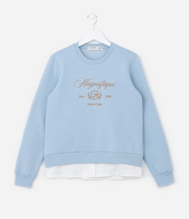 Casaco Infantil com Barra Diferenciada e Lettering Magnifique - Tam 5 a 14 Anos Azul