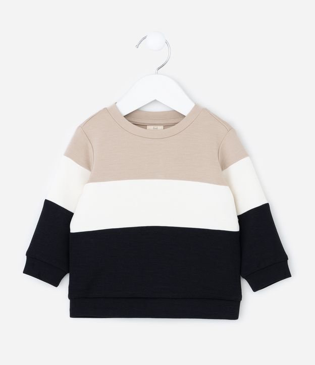 Casaco Infantil com Blocos de Cores e Manga Longa – Tam RN a 18 Meses Preto