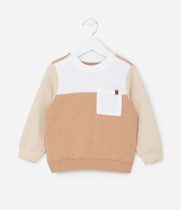 Casaco Infantil com Bolsinho e Recortes Contrastantes - Tam 1 a 6 Anos Marrom/Bege