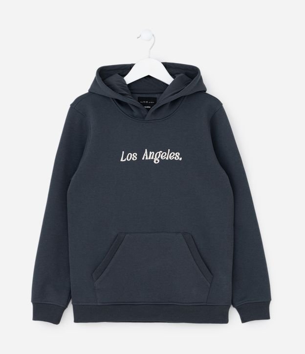 Casaco Infantil com Capuz e Bordado Los Angeles – Tam 5 a 14 Anos Cinza Escuro