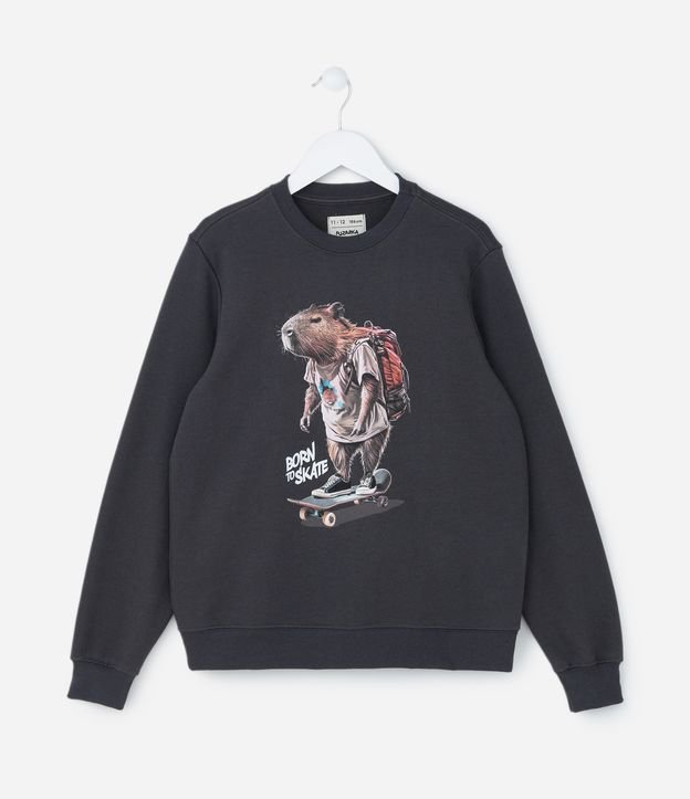 Casaco Infantil com Estampa Capivara Skatista - Tam 5 a 14 Anos Cinza Escuro