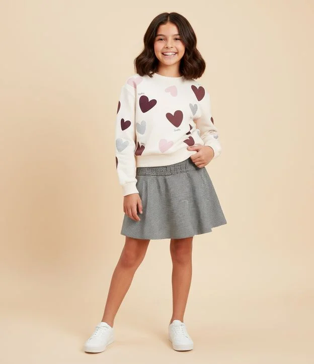 Casaco Infantil com Estampa de Corações – Tam 7 a 14 Anos Off White