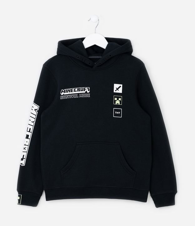 Casaco Infantil com Estampa Frente e Costas Minecraft - Tam 5 a 14 Anos Preto