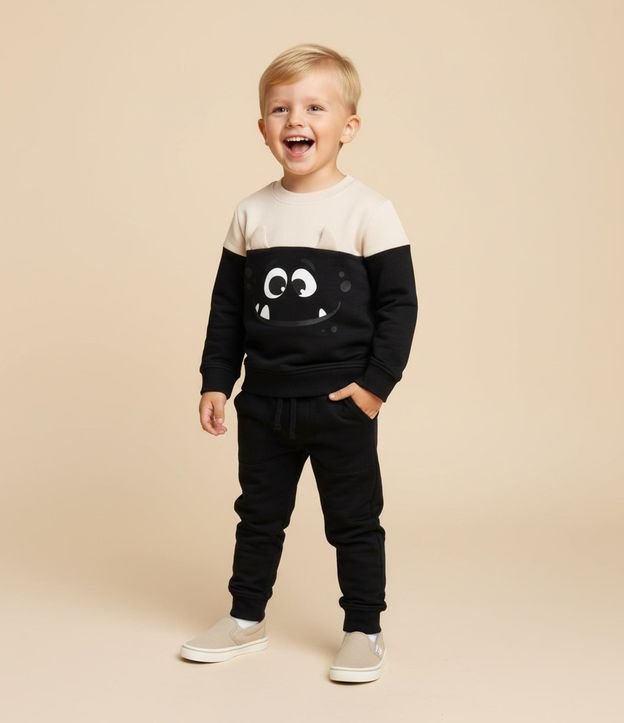 Casaco Infantil com Estampa Relevo de Mostrinho - Tam 1 a 6 Anos Preto/Bege