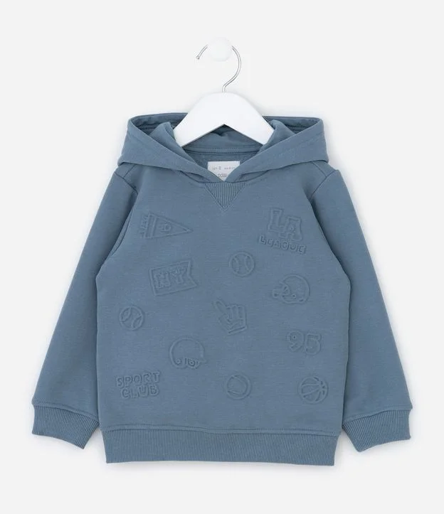 Casaco Infantil com Ícones Embossed e Capuz – Tam 1 a 6 Anos Azul Médio
