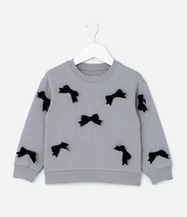Casaco Infantil com Lacinhos de Veludo Aplicados - Tam 1 a 6 Anos Cinza