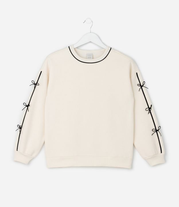 Casaco infantil confeccionado em moletom com felpa, possui gola redonda, mangas longas bufantes e aplicações de lacinhos contrastantes ao longo das mangas. O caimento comfort garante mobilidade e praticidade para o dia a dia.