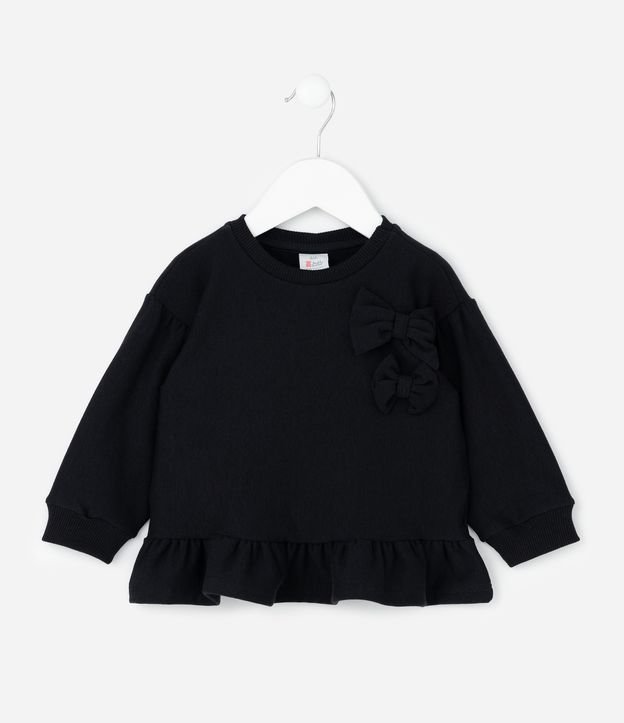 Casaco Infantil com Laços Aplicados – Tam 3 a 18 Meses Preto