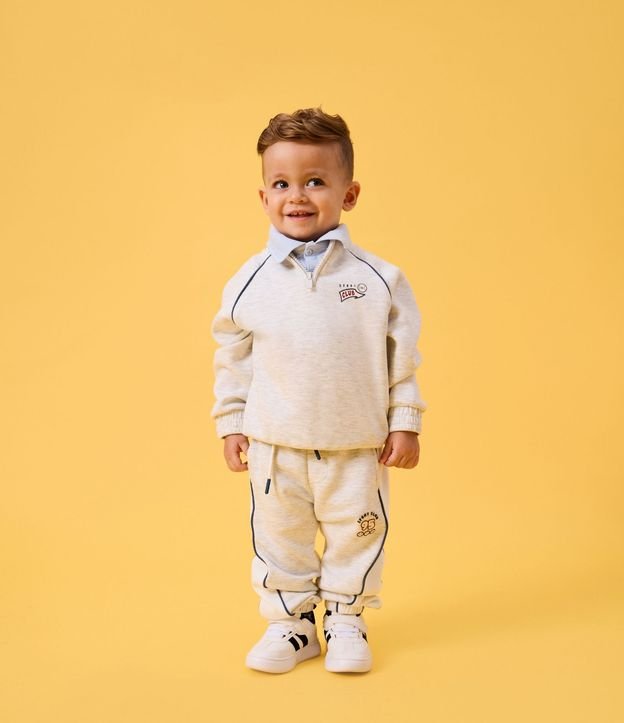 Casaco Infantil Com Meio Zíper E Estampa College - Tam 1 a 5 Anos Cinza