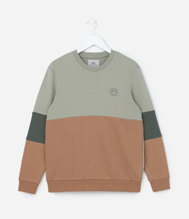 Casaco Infantil com Recortes Contrastantes - Tam 5 a 14 Anos Verde/Marrom
